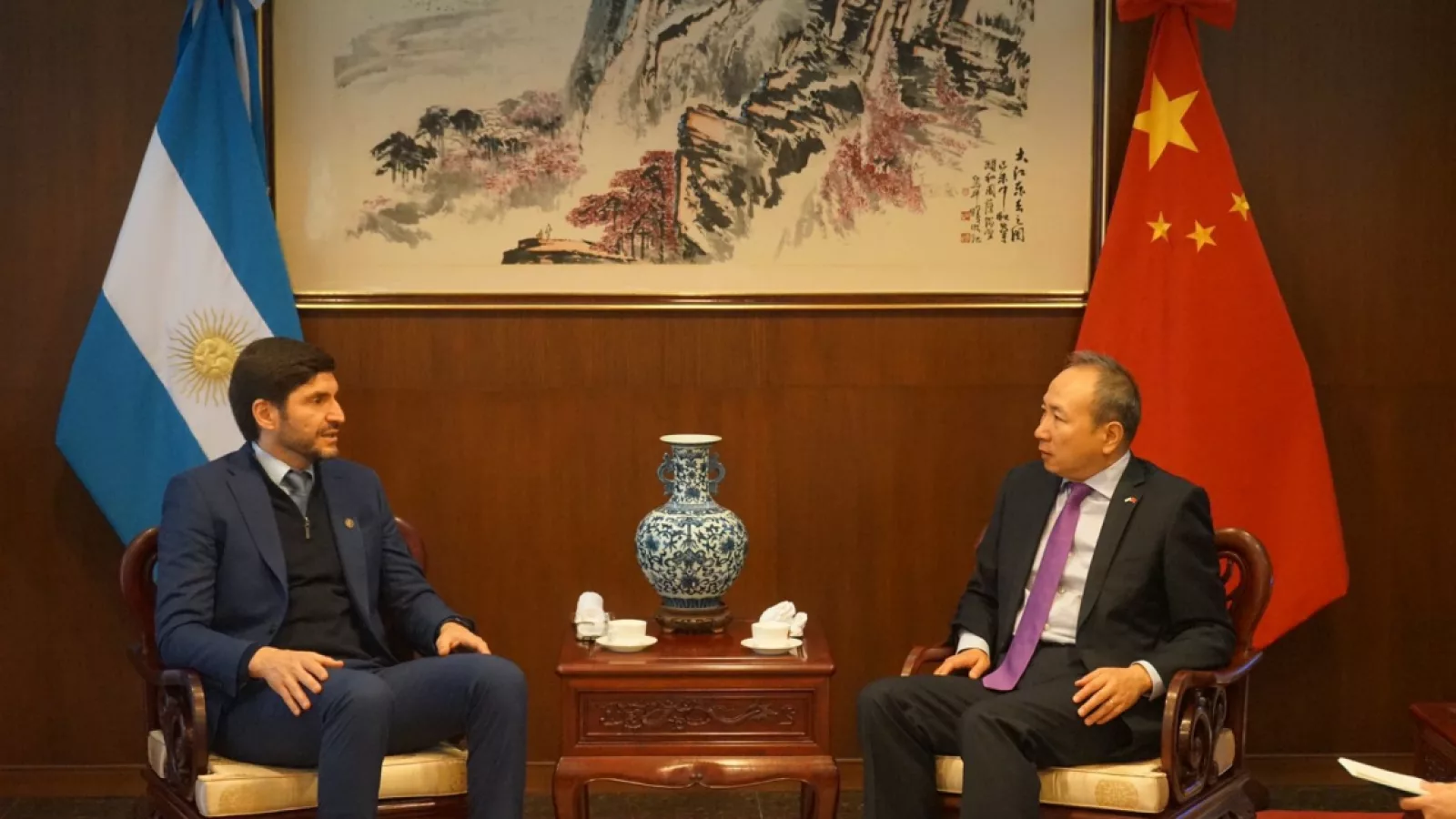 Pullaro estuvo dos veces en la Embajada China en Buenos Aires, promoviendo los intereses de Santa Fe. Especialmente, en una de ellas, para invitar a las firmas orientales a participar del Santa Fe Business Forum. Rosario es la puerta de salida de los productos que el mercado chino más necesita: carnes y granos.