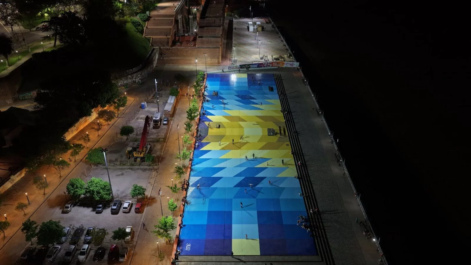 “La obra propone una lectura visual del río, el sol y la ciudad a través de tramas geométricas y una paleta que combina ocres, amarillos y azules. El diseño genera una ilusión de profundidad y movimiento que invita a redescubrir el espacio urbano. No es solo una intervención estética, es una forma de decir presente, de celebrar los 300 años con una obra viva, abierta y transformadora” agregó David Petroni.