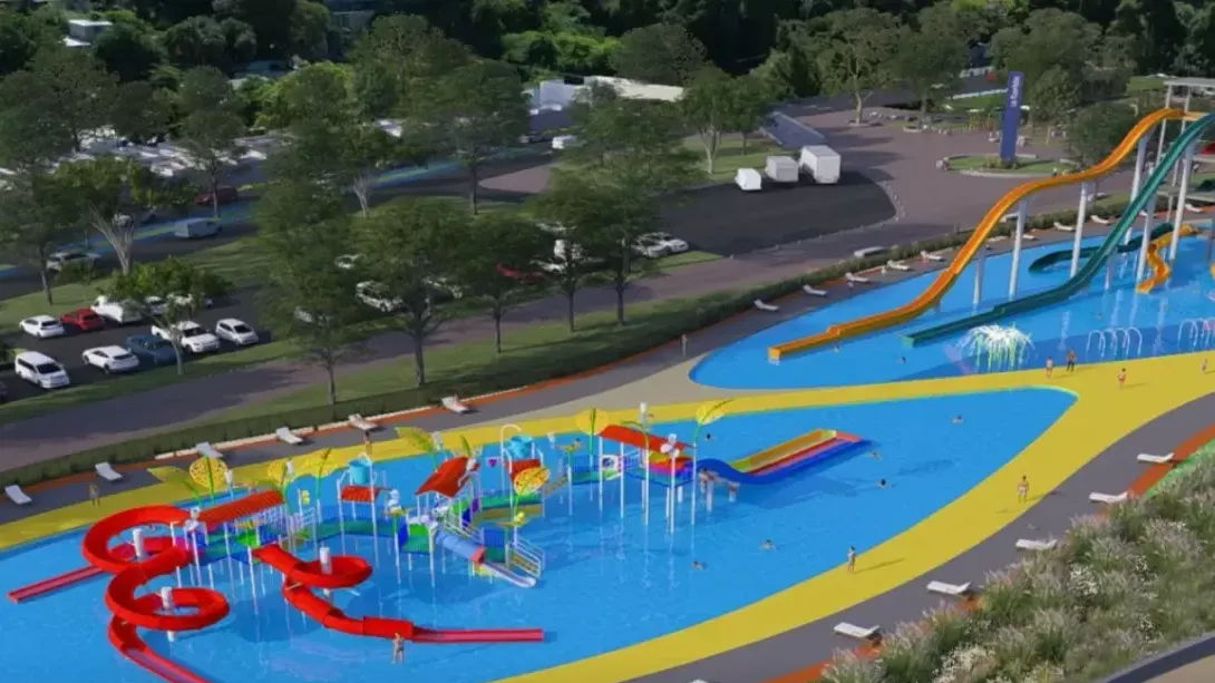 Por un lado, el sector infantil, ubicado al norte, contará con juegos de baja profundidad, toboganes de menor escala y dispositivos de aspersión, pensados para el público más pequeño. En el extremo sur, en tanto, se emplazará la torre de toboganes, una estructura de gran altura que concentrará diferentes propuestas de deslizamiento —abiertas, cerradas y de caída rápida—, optimizando el uso del espacio vertical.