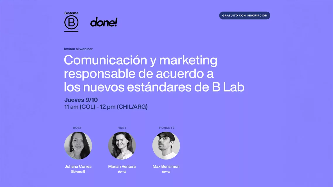 El lanzamiento oficial será el próximo jueves 9 de octubre, en un webinar gratuito y abierto que cuenta con el apoyo de Sistema B. Johana Correa, del equipo de comunicaciones de Sistema B, y Marian Ventura, de done!, serán las anfitrionas del evento, que contará con la presentación de Max Bensimon, director y socio de la agencia, autor de la guía.