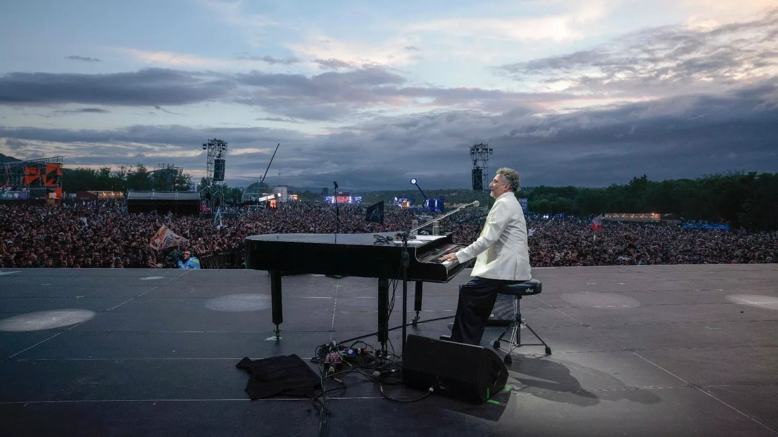 En el Escenario Norte , el rosarino desplegó una propuesta ambiciosa y profundamente artística —marca registrada si se trata de Paez— que lo tuvo repartido entre el piano ubicado al frente de su banda y la pasarela, en diálogo permanente con el público. Con visuales impactantes y una formación súper aceitada, el concierto fue un recorrido vibrante por distintas etapas de su carrera.
